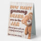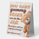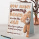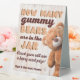 Guess How Many Gummy Bears Baby Shower Game. Cute Gender Neutral Theme with Stuffed Brown Teddy Bear. Add your own text at the bottom.