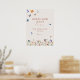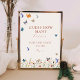 💐 Bohemian cream and terracotta script butterfly themed bridal shower guess how many kisses for soon to be Mrs games pedestal signs. This design is showing a perfect blend of cream light colours with beautiful colourful vibarant wildflowers at bottom along with perfect shiny blend of pink and purple along with cute 🦋 coloruful pink and purple butterflies making it a perfect choice for bridal shower signs