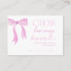 Guess How Many Kisses Pink Bow Bridal Shower Game Enclosure Card
