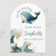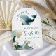 Sea You Soon Guess How Many White Baby Shower Game Card. Available digitally and printed. Easily personalise the text to your details. With a watercolor illustration of a whale and wave.