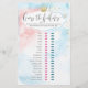 This baby shower game card features a script modern font on pink and blue watercolor background with gold crown and splashes, perfect for a surprise! Use this card for your unique gender reveal party!