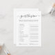 Beautiful design. Fun game for a Bridal Shower. Imagine my surprise when there was no “cheat” sheet. I contacted Zazzle for help but their ideas were to contact the developer. Haha there is no contact button. I ended up Googling the game and coming up with my own solution. Cute game but maybe downloading it via Etsy would have been a better idea. .
