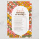 A retro guess-who game to match our "Hello Baby | Groovy Retro Flowers Boho Baby Shower" invitations. View the collection linked on this page for matching items. This design features a groovy floral pattern background with a white oval overlay in the centre. The warm vintage colour palette of brown, yellow, orange, cream, and green hues gives a real 70s touch. The flowery daisy pattern is a hand-drawn cartoon-style flower power pattern with bold colours and strong outlines to match the seventies hippie style. Inside the oval frame, there is space for 15 questions of your choice.