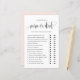 Guess who? Mum or dad? Add this fun and playful game to your baby shower. It features a black whimsical script, classic typography, blush pink background. You can personalise the backside of this baby shower game card. This guessing game card is perfect for any baby shower theme and season.