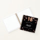 A stylish black background with rose gold stars. Add your name, and text. Age number is written with a balloon style font.