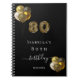 For an elegant 80th birthday party. A black background, decorated with balloons. Number 80 is written with a trendy balloon style font, leopard pattern. Personalize and add a name and a date. The word birthday is written with a modern hand lettered style script with swashes.