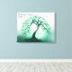 Wedding or engagement party guests can sign this green tree of life wrapped canvas. Instead of storing the guest book away in a closet, you can display this canvas with the signatures of all your family and friends. Perfect keepsake art. Tree of Life in a green mist with the moon peeking through. Serene and beautiful, it stands forever in tranquillity.