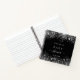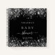 A stylish black background with faux silver glitter dust. Personalise and add a name and the date. Can be used as guest book, planning the party or as a party favour.