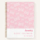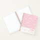 A soft pink background, decorated with a pattern of white nursery cribs. Personalise and add a name and a date. Can be used as a party guest book, for planning the party or as party favours.