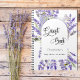 A stylish white background decorated with an arch frame of violet lavender florals. Personalise and add a name and a title/event. Guest Book is written with a stylish hand letted script.