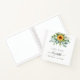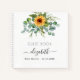 A white background. Decorated with sunflowers, eucalyptus greenery. Add a name, date.