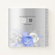 A faux silver looking background with blue and white florals, silver foliage and a golden cross. Personalise and add a name, and date.
