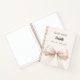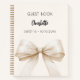A beige, cream background colour. Decorated with a large bow. Personalise and add your name, text.