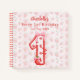 Strasberry pattern as background decorated with a large number 1 with a pink bow and strawberries. Personalise and add a name and text.