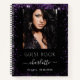 A guest book for a feminine and glamourous 21st (or any age) birthday party. A black background, decorated with faux purple glitter, sparkles. Add your name, age 21, date and a photo.
