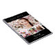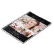 Create your own unique photo collage. Use four, 4 of your favourite photo. Personalise and a name and age/dates. A black background, white text.