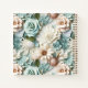 A dusty green, white and cream coloured flower pattern. Personalise and add a name and age/date. The name is written with a modern hand lettered style script