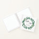 A white background colour.  Add a name and a date. Decorated with a watercolored eucalyptus greenery wreath. The text: Guest Book is written with a modern hand lettered style script.