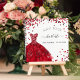 For a 18th birthday (or any age) party. A white background with red sparkles, confetti, a red dress. The name is written with a modern hand lettered style script with swashes. Personalise and add a name and date.