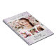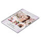 Create your own unique photo collage. Use four, 4 of your favourite photo. Personalise and a name and age/dates. A faux silver looking background, black text. Decorated with violet, lavender coloured faux glitter, sparkles.