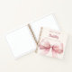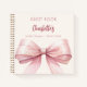 A cream, beige background colour. Decorated with a large pink bow. Personalise and add the name and date.