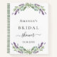 A stylish white background decorated with violet lavender flowers and eucalyptus greenery. Personalize and add a name and a date. Can be used as a party guest book, for planning the party or as party favors.