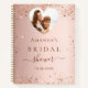 A stylish rose gold background with faux sparkles. Personalise and add a name and a date. Add a photo to the heart shaped frame. Can be used as a party guest book, for planning the party or as party favours.
