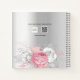 A faux silver looking background with pink and white florals, silver foliage and a golden cross. Personalise and add a name, and date.