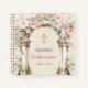 Commemorate this special milestone in faith with elegance and grace. This Confirmation guest book features a stunning design with a classic marble garden arch adorned with soft pink watercolor flowers and lush greenery, symbolising purity and spiritual growth. A delicate gold cross adds a meaningful sacred touch.
