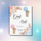 For an elegant and modern baby shower, gender reveal party. A white background. Decorated with light blue, rose gold, pink florals, pampas grass and two teddy bears. One with a blue balloon, the other with a pink balloon.