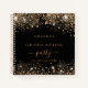 A stylish black background with dark faux gold glitter dust. Personalize and add a name and the date. Can be used as guest book or planning the party.