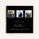 A graduation party guest book. A stylish black background. For both him and her. Add 3 photos, name, school name, year. The name is written with a modern hand lettered style script.