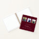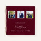 A graduation party guest book. A burgundy background. For both him and her. Add 3 photos, name, school name, year. The name is written with a modern hand lettered style script.
