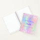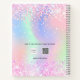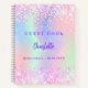 A guest book for a Quinceañera, 15th birthday party. A trendy holographic coloured background in pink, purple, mint green. Decorated with confetti in pink. Personalise and add a name, the name is written with a girly modern hand lettered style script