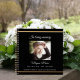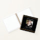 A guest book for a memorial service or funeral. A classic black background, a faux gold frame on the front. Personalise and add a photo, name and dates.