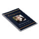 A guest book for a memorial service or funeral. A dark blue background, a faux gold frame on the front. Personalise and add a photo, name and dates.