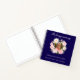 A guest book for a memorial service or funeral. A classic dark blue background, decorated with a pink and white floral wreath. Personalise and add a photo, name and dates.
