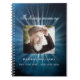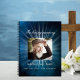 A guest book for a memorial service or funeral. A blue sky as background. White light rays behind the photo. Personalise and add a photo, name and dates. White letters.
