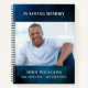 A guest book for a memorial service or funeral. A blue sky as background. Personalise and add a photo, name and dates. White letters.