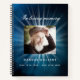 A guest book for a memorial service or funeral. A blue sky as background. White light rays behind the photo. Personalise and add a photo, name and dates. White letters.