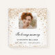 A stylish white background with faux gold glitter dust. With the text: In loving memory written with an elegant hand lettered style script. Add a name and dates, a photo.