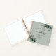 An olive green background decorated with olives and olive greenery. Personalise and add your names and wedding date.