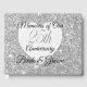 "All that glitters, is not goldl . . ." or silver. And, no doubt, not all of a 25-year marriage is "wedded bliss". This fabulous guest book, however, makes a delightful keepsake of this hallmark event . . . space for guests to sign and share their favourite memory of the celebrant couple. A backdrop of "glittering" silver is overlaid by a white heart which provides much-needed contrast for the "25th" text image. This is framed by appropriate text which crowns the "Bridge & Groom" text you can personalise with the couple's names.