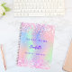 A guest book for a Sweet 16, 16th birthday party. A trendy holographic coloured background in pink, purple, mint green. Decorated with confetti in pink. Personalise and add a name, the name is written with a girly modern hand lettered style script