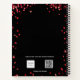 For a Quinceañera, 15th birthday party. A black background with red sparkles, confetti, a red dress. The name is written with a modern hand lettered style script with swashes. Personalise and add a name and date.