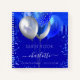 A trendy royal blue background with paint dripping look, faux silver and blue balloons. Personalise and add a name and a date.