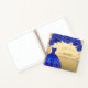 For a Quinceañera, 15th birthday party. A faux gold background with faux glitter,sparkles, a royal blue dress and blue roses, florals. The name is written with a modern hand lettered style script with swashes. Personalise and add a name and date.