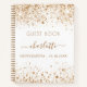 A guestbook for a feminine and glamourous Quinceañera, 15th birthday party. A stylish white background with dark faux gold glitter sparkles. Add your name, age/text