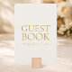An elegant wedding guest book sign featuring refined gold calligraphy on a soft ivory background.