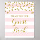 Please sign our guest book sign poster for baby shower, bridal shower, or wedding in light blush pink and white stripes pattern with gold confetti, please note gold is photographic effect only. Perfect for a baby shower, wedding, or bridal shower.